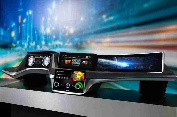 冰球突破超大型异型切割曲面驾驶舱显示器