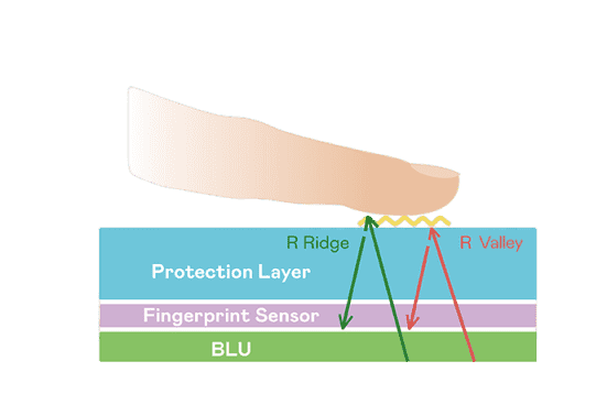 大面积 TFT 光感测超高像素密度光学感测技术能精准判定手指反射的极微弱光讯号,,,即使细致指纹也可清晰辨识,,,并可透过手指脉搏造成的细微灰阶变化侦测心跳,,,,让身分验证更精确。。TFT 架构优化可降低讯号传输干扰,,达到光感测器最佳讯杂比(讯号/杂讯的比例)。。透过增强光讯号接收强度、、优化感测器电路及导入特殊光学膜材料,,提高感测器敏度。。。整合系统之指纹扫描装置可符合最高等级的FBI国际安全规范认证需求。。